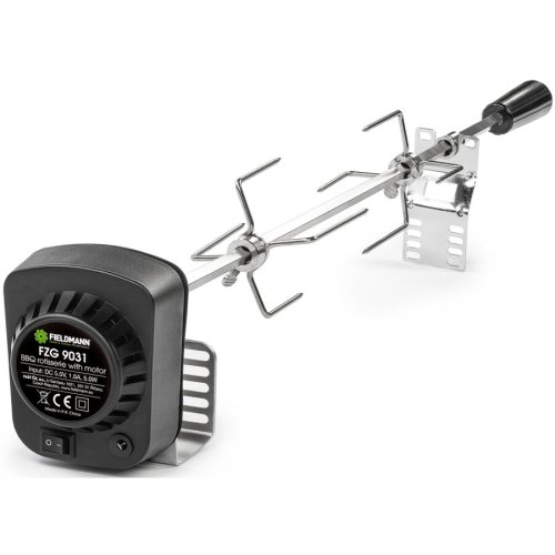 Grilovací jehla s motorem Motor: napětí 230 V, 50/60Hz Délka jehly: 80 cm Materiál: nerezová ocel 2x čtyřramenná vidlice 3x chromové držáky (U, Z) Délka kabelu: 125 cm Balení obsahuje vyvažovací závaží