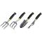 Sada zahradního nářadí Sada 4 ks ručního nářadí Lopatka,hrabičky, kultivátor, vypichovák plevele Vysoká odolnost Materiál: hliník Změkčená rukojeť