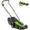 Technické parametry: Plocha sečení do 350 m² Centrálně nastavitelná výška sečení 25–75 mm (6 pozic) Záběr sečení 33 cm Doba nabíjení 60 min Nastavitelná výška rukojeti Sběrný koš 35 l s ukazatelem zaplnění Hmotnost 8 kg