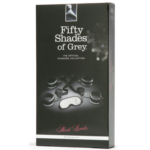 Fifty Shades of Grey - Erotická sada Hard Limits obsahuje: saténovou masku na oči a pouta na zápěstí a kotníky v černo-stříbrném provedení.