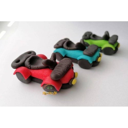 Figurka na dort čtyřkolka červené barvy. Vyrobena z kokosové hmoty.