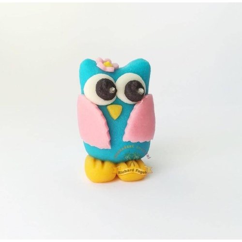 Figurka na dort sova modré barvy, 30 g. Vyrobena z kokosové hmoty.