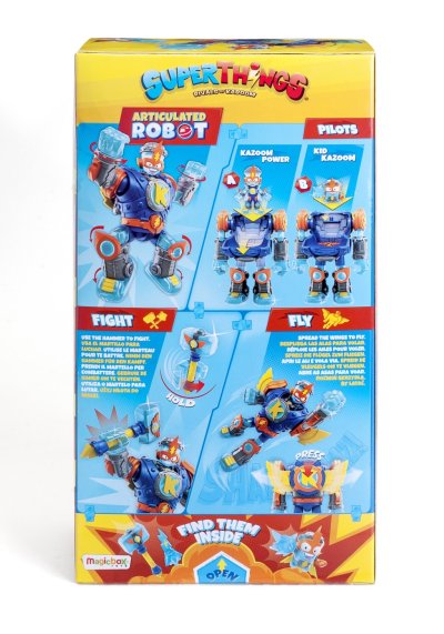 Figurka Robota SuperThings – perfektní hračka pro kluky, kteří milují figurky ze světově oblíbené série! Nebudou chybět vzrušující atrakce a mnoho hrdinských akcí. Energický robot SuperThings Superbot Blue Kazoom Power je připraven bránit město Kaboom a vy mu musíte pomoci! Výhodou je jistě zajímavé řešení, které umožňuje namontovat SuperThing nebo Kazoom Kid v horní části figurky. Pak ho jen ovládejte, aby svou zbraň používal moudře. Je schopen boje na zemi i ve vzduchu díky svým křídlům, která dokáže v případě potřeby roztáhnout. Součástí balení je Superbot Blue Kazoom Power a exluzivní Kazoom Kid s příslušenstvím.