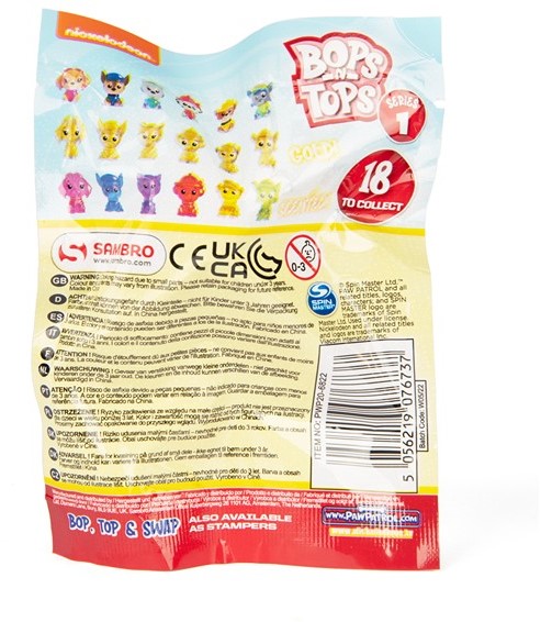 Figurky Paw Patrol/Tlapková patrola, gumové figurky, které je možné umístit také na konec tužky, 4 cm, sáček s překvapením 10x13 cm, 18 druhů