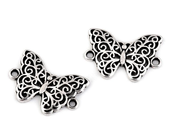 Filigránový dekorační našívací motýl, mandala, srdce, strom života - platina motýl (5 ks)