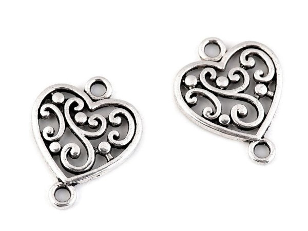 Ozdobný díl různých designů má dvě očka, která slouží k přichycení. Varianty č. 1 - 3 jsou lehce vypouklé a jednostranné. Varianty č. 4 - 5 lze použít i oboustranně. Rozměry č.1 - srdce - 14 x 19 mm. Rozměry č.2 - ornamenty - 14 x 20 mm. Rozměry č.3 - motýl - 20 x 14 mm. Rozměry č.4 - strom - 13 x 23 mm. Rozměry č.5 - mandala - 20 x 14 mm. Rozměry č.6 - mandala - 13 x 18 mm. Rozměry č.7 - mandala - 13 x 20 mm. Rozměry č.8 - strom - 13 x 19 mm. [Rozměry č.9 - strom - 11 x 15 mm.] [Rozměry č.10 - strom - 13 x 17 mm.] [Rozměry č.11 - květ - 15 x 20 mm.] [Rozměry č.12 - srdce - 12 x 21 mm.] [Rozměry č.13 - květ života - 15 x 21 mm.]