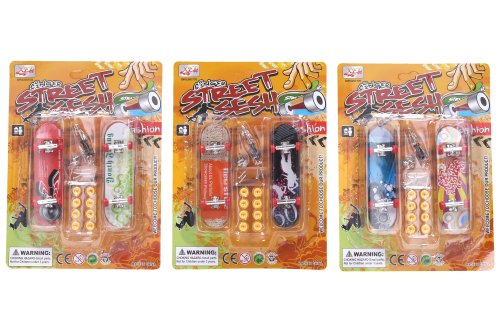 Fingerboard set. Rozměry 9x2,5x1,5 cm. Obsah balení - fingerboard 2 ks, náhradní kolečka, náhradní šroubky, šroubováček. více variant