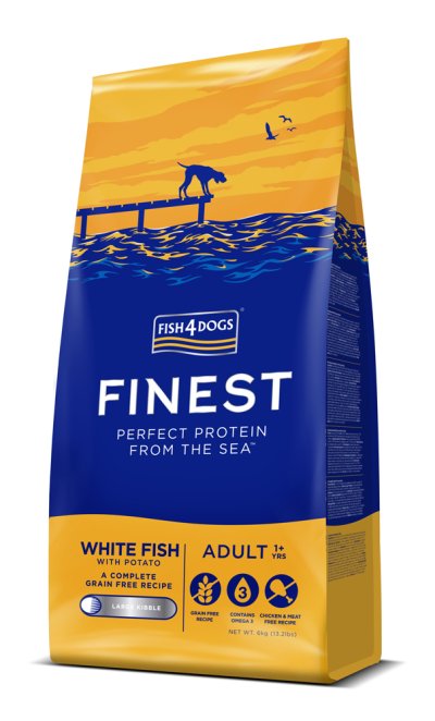 Granule pro dospělé psy s obsahem ryb a bramborami jsou vyrobeny ze sezónních druhů bílých ryb ulovených v bohatých lovištích severního Atlantiku. Vyvážené suché krmivo bez obsahu obilovin obsahuje omega 3 mastné kyseliny. Granule pomáhají s trávením a podporují celkové zdraví střev.