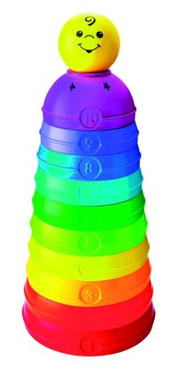 Fisher-Price aktivní skládačka s rolničkou. Nová „klasická" hračka – skvělé základní skládací hrnečky mají tolik možností využití… Dítě může jednoduše poskládat deset kulatých šálků do výšky nebo je obrátit přes sebe. Detailně tvarované šálky představují dítěti čísla a barvy, vyskládej všechny hrnečky a napočítej do deseti! Podobně veliké šálky se mohou složit do tvaru koule. Sada je k dostání s rolničkou, dá se umístit do jedné z koulí, nebo se dá dokonce dát na vrchol vyskládaných hrnečků. Dítě také může díky této hračce vytvářet abstraktní tvary. Možnosti jsou skoro nekonečné.