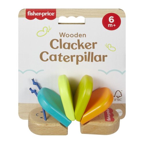 S touto dřevěnou hračkou od Fisher-Price® si děťátko může zahrát zajímavou smyslovou hru. Barevné chrastítko s motivem housenky, jehož velikost je tak akorát, aby ho mohly uchopit malé ručičky, vydává při třesení příjemné klapající zvuky. Hračka je vyrobená ze dřeva z dobře obhospodařovaných zdrojů s certifikátem Forest Stewardship Council (FSC C004225) a pomáhá posilovat jemnou motoriku dítěte.