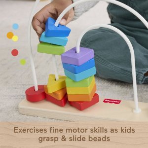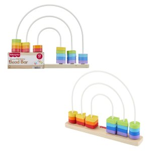 Dřevěné korálkové bludiště duha od Fisher-Price umožňuje malým dětem objevovat tvary, barvy a základy počítání prostřednictvím zábavné hry s posouváním korálků. Vyrobena je ze dřeva pocházejícího z lesů s certifikací FSC (FSC-N004566) a je ozdobena netoxickými, vodou ředitelnými barvami. Tato klasická didaktická hračka obsahuje 21 jasně barevných korálků ve 3 různých tvarech, které děti mohou uchopit a posouvat tam a zpět po tyčkách. Hračka pomáhá během hry posilovat jemnou motoriku, včetně koordinace ruka-oko. Barvy a vzhled výrobku se mohou lišit.