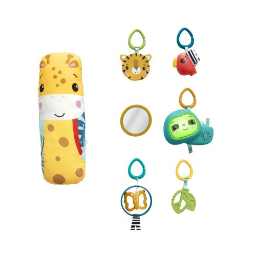 Fisher-Price® Hrací dečka se žirafou 3 v 1 roste spolu s vaším děťátkem od novorozence až po batole, a po celou dobu nabízí dětem smyslové zážitky. Novorozenci mohou ležet na měkké hrací podložce a nad nimi je na obloucích zavěšeno 6 hraček, které stimulují jejich smysly. Při hře na bříšku lze nastavitelný oblouk posunout dolů, aby byly hračky v dosahu, zatímco polštářek ve tvaru žirafy pomáhá dítě při hře podpírat. Hračka lenochoda s hudbou a světly navíc zajistí, že hraní bude stále zábavné, až vaše děťátko přejde z chvil na bříšku do sezení a hraní si na cestách.