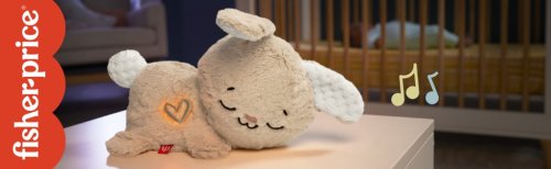 Plyšový přenosný králíček se zklidňující hudbou od Fisher-Price® je měkká a příjemná dětská senzorická hračka, která pomocí pohybu a zvuku pomáhá uklidnit a utěšit vaše děťátko. Když králíček začne zívat a "usínat", jeho hlava se rytmicky kýve dopředu a dozadu, což pomáhá uklidnit i vaše děťátko. Tento plně přizpůsobitelný stolní usínáček má 5 různých možností uklidňujícího zvuku a měkké svítící světlo.