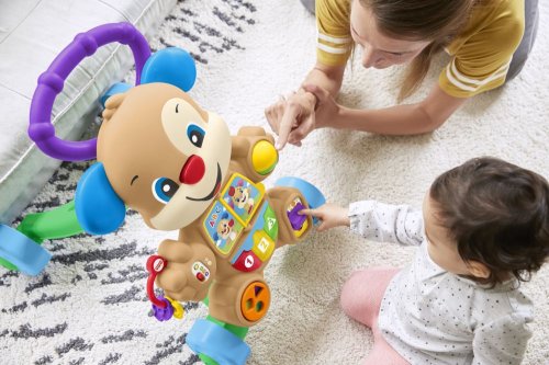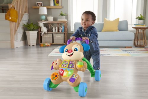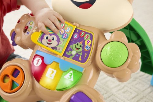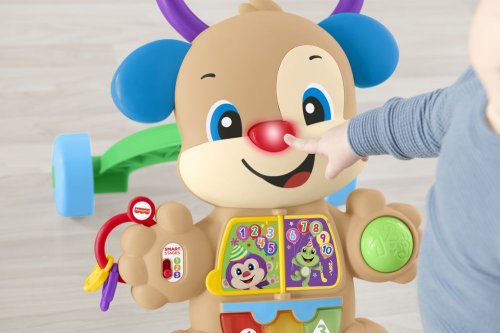 Pojďme se projít, bejby! Chodítko pejsek z řady Směj se a Poznávej!® Smart Stages® je perfektní kamarád pro vaše rostoucí dítě, který nabízí vzrušující praktické aktivity, spoustu povzbudivých frází a podporu pro první malé krůčky. Jak malé děti rostou a začínají chodit, pejsek jim představí abecedu, tvary, barvy, počítání a dokonce i anglická slovíčka! Když se vaši nejmenší budou snažit dosáhnout na zábavné aktivity a hrát si s nimi, pořádně si u toho procvičí své svaly - stejně jako když se potom zvednou, postaví se a projdou za chodítkem. Děti objevují, jak aktivovat hudbu a fráze stisknutím tlačítek nebo tlačením chodítka, a u toho vidí, že jejich činy mohou způsobit zábavné věci - hej, to je příčina a následek! Pro výběr jazyka opakovaně stiskněte tlačítko s označením zeměkoule, držte 4s a zvolte jazyk.