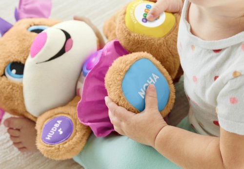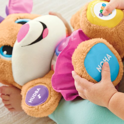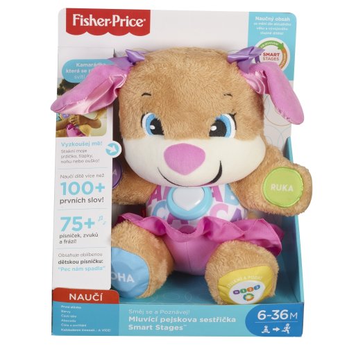 Seznamte se s prvním nejlepším kamarádem vašeho děťátka! Měkoučká Mluvící pejskova sestřička z řady Směj se a Poznávej! Smart Stages™ od Fisher-Price® se postará o to, že učení bude vždy jedna velká legrace. Když se dítě svojí kamarádky dotkne, zareaguje Mluvící pejskova sestřička tak, že hned spustí veselé písničky a fráze, které vaše maličké naučí víc než 100 základních slov, části těla, barvy, tvary a mnoho dalšího! Srdíčko pejskovy sestřičky dokonce barevně bliká do rytmu hudby! Protože se každé dítě vyvíjí různě rychle, podporuje hračka technologii Smart Stages™, díky níž můžete zvolit takovou úroveň učení, která je pro vaše děťátko zrovna nejvhodnější. Vybrat můžete mezi třemi herními úrovněmi.