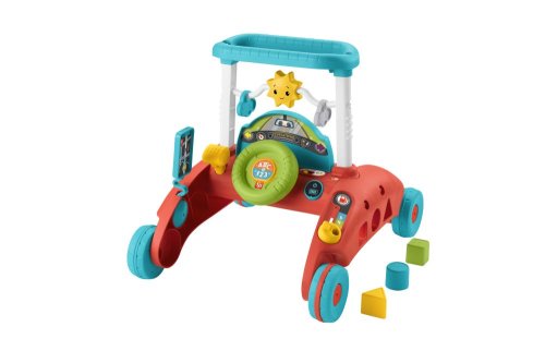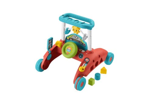Oboustranné chodítko od Fisher-Price® roste spolu s dítětem a nabízí tři režimy hry. V prvním režimu jsou aktivity pro hru v sedě, kdy může dítě ovládat palubní desku "řidiče" s volantem, svítícím klaksonem, řadicí pákou a tlačítkem ABC/123, které aktivuje světla a zvuky. Chodítko dále obsahuje 3 barevné tvary k třídění, posuvník, klapky a další. V druhém režimu se malý neposeda může chytit za rukojeť na stabilní základně a vytáhnout se pomocí chodítka do stoje (z obou stran!). V třetím režimu pak chodítko, přístupné z obou stran, odměňuje první krůčky dítěte světýlky, písničkami, zvuky a frázemi. Chodítko má kolečka s regulací rychlosti, která pomáhají malým chodcům ustálit jejich první krůčky. Protože se každé dítě vyvíjí jinak rychle, podporuje hračka technologii Smart Stages™, díky níž můžete zvolit takovou úroveň obsahu, která je pro vaše děťátko zrovna nejvhodnější. Vybrat můžete mezi třemi úrovněmi výukového obsahu, který přináší více než 100 zvuků, melodií a frází a učí děti abecedu, čísla, počítání, protiklady a další!