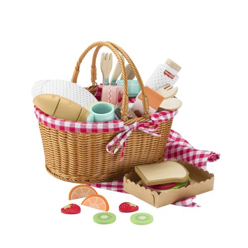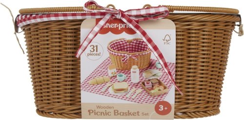 S piknikovým košem a setem na hraní s dřevěným "jídlem" od Fisher-Price® mohou předškolní děti vyrazit na nekonečná venkovní dobrodružství. Tato 31dílná sada obsahuje vše, co děti potřebují pro zábavný piknik, včetně talířů, hrníčků, příborů, 17 hravých potravin, příjemné kostkované deky a košíku na přenášení veškerého jídla a vybavení. Díly jsou vyrobené ze dřeva z dobře obhospodařovaných lesů s certifikací FSC®. (FSC C004225, 2019)