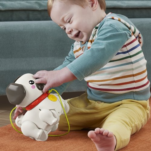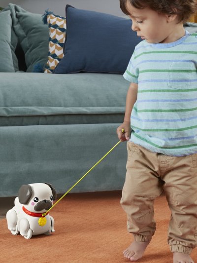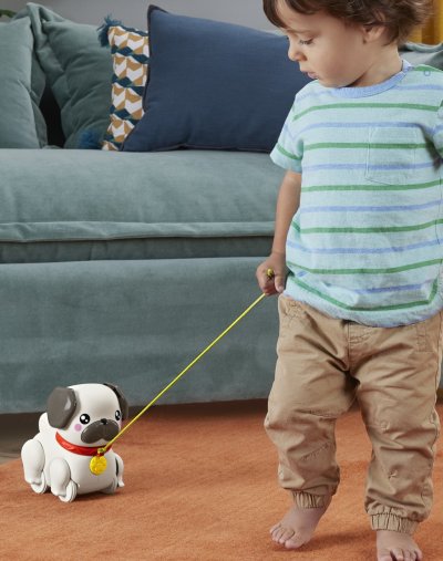 Chodící mopslík od Fisher-Price® je ideální pro malé milovníky pejsků. Tato tahací hračka pro batolata je roztomilý zvířecí miláček, kterého mohou děti samy "venčit". Jakmile děti zatáhnou za vodítko, jeho nohy a uši se začnou pohybovat a mopslík vydává líbivý "štěkavý" zvuk, který děti povzbuzuje k další chůzi a pomáhá posilovat jejich hrubou motoriku.