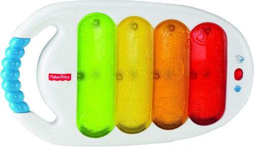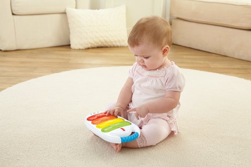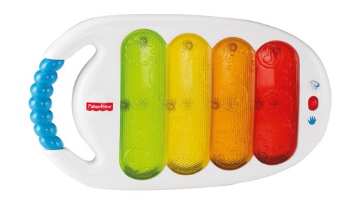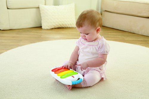 Každá klávesa tohoto xylofonu, určeného pro novorozence, vydává elektronickou hudbu a světla (zelené, žluté, oranžové a červené). Jeho součástí je pohybový spínač, který jednoduchým plácnutím dokáže aktivovat i to nejmenší dítě. Spodní část xylof onu je vypouklá, takže se lehce houpe (tak, ab y aktivoval elektroniku).Po stisknutí jednotlivých kláves dítě uslyší jednotlivé tóny a hudební popěvky, po stisknutí několika kláves najednou, uslyší akord a hudební popěvek. Jednotlivé klávesy se po stisknutí rozsvítí, při popěvcích tancují všechna světla. Obsahuje 4 hudební popěvky. Přepínačem nahoře lze volit mezi 2 režimy (pohybovým nebo dětským). Ve spodní části se nachází vypínač, regulátor hlasitosti a reproduktor, který však nebrání houpání.Věk 3 měs+