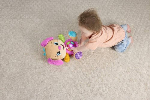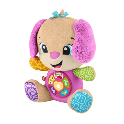 Mluvící pejskova sestřička Smart Stages® z řady Fisher-Price® Směj se a Poznávej!® je příjemná plyšová hudební hračka, která seznamuje dítě s abecedou, tvary, prvními slovy a dalšími prvky! Děti mohou stisknout 5 tlačítek na bříšku a sledovat, jak se její srdíčko rozsvěcuje barvami, zatímco hraje více než 80 písniček, zvuků a frází. Díky více než 12 originálním písničkám a 3 úrovním učení Smart Stages®, které rostou spolu s dítětem od kojence až po batole, se Mluvící pejskova sestřička stane nejlepší kamarádkou vašeho děťátka.