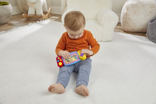 Fisher-Price® Zábavná herní konzole z řady Směj se a Poznávej! je určena pro nejmenší hráče a má více než 10 tlačítek pro aktivaci světel a výukový obsah, který učí vaše malé abecedu, počítání a další! Další aktivity zahrnují otáčení žluté rukojeti pro zábavné zvuky cvakání a posouvání červené rukojeti nahoru a dolů.
