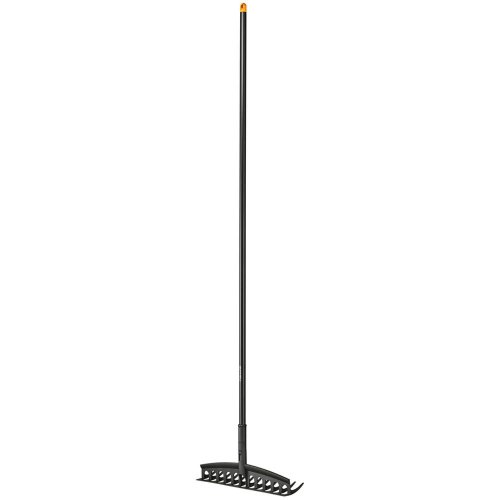 Ideální na hrabání půdy, trávy, větviček nebo k přípravě záhonů Horní rovná hrana je speciálně navržena pro rovnání povrchu záhonů Pohodlná práce s novou pevnou násadou z hliníku Pracovní část vyrobena z odolného plastu Praktické očko pro snadné zavěšení hrábí