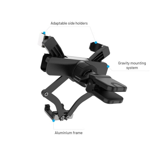 Univerzální držák pro mobilní telefony s uchycením do ventilace Uchycení telefonu gravitačním systémem Otočné boční kleště pro lepší zajištění telefonu Pevné uchycení kleštěmi do mřížky ventilace Vhodný pro telefony s uhlopříčkou 4,7" - 6,8" 360° otočný kloub k nastavení ideálního úhlu Snadné vložení i vyjmutí telefonu jednou rukou