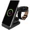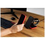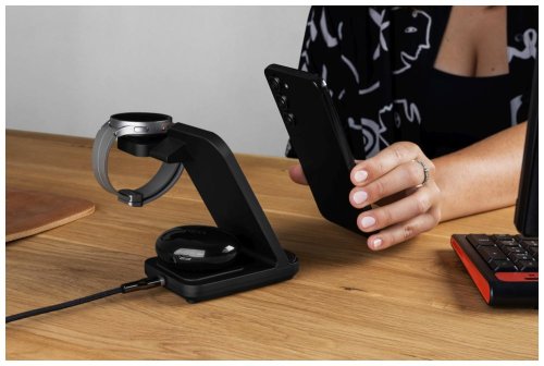 Přiložte svůj mobilní telefon k hlavní nabíjecí ploše s výkonem až 15 W, kterou najdete na přední straně držáku. Dokonce ani nezáleží na tom, jestli ho umístíte vertikálně nebo horizontálně. O stavu nabíjení vás informuje praktická LED dioda. Pokud se chystáte nabíjet TWS sluchátka, použijete sekundární plochu s výkonem 5 W na podstavci stojánku. Je kompatibilní nejen se sluchátky, ale také s telefonem či jiným zařízením s bezdrátovým nabíjením. Poslední nabíjecí plocha je určená pro chytré hodinky Samsung Galaxy Watch. Tento adaptér můžete odepnout a připojit do jiných nabíječek pomocí USB-C konektoru.
