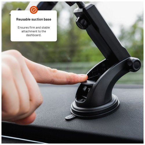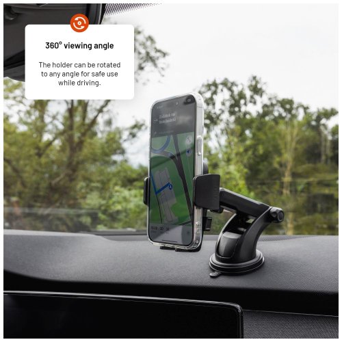 Silikonové prvky pro ochranu telefonu Teleskopické rameno s nastavitelnou výškou a délkou 10,8 -16,8 cm Přísavný podstavec pro připevnění na čelní sklo či palubní desku Znovupoužitelná přísavná základna se silnou přilnavostí 360° otočný kloub pro nastavení ideálního úhlu Odnímatelné úchyty pro nabíjecí kabel na zadní straně držáku Ponechává volný přístup k nabíjecímu konektoru