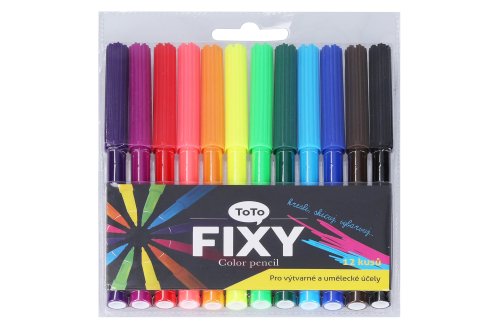 Barevné fixy 12 ks • Standardní vláknový hrot • Ideální podklad pro kreslení - papír