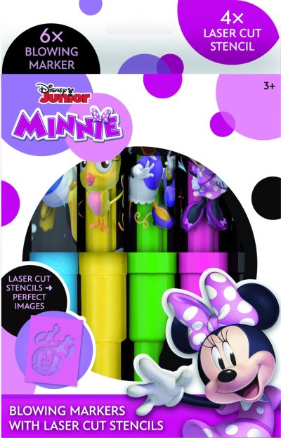Objevte kouzlo tvoření našimi foukacími fixami! Syté odstíny fix s motivem minnie si zamiluje každé dítě. Balení obsahuje 6 barevných foukacích fix s potiskem a 4 barevné papírové šablonky v oblíbených pohádkových motivech. Rozměr balení: 12 x 19 cm Vhodné pro děti od 3 let