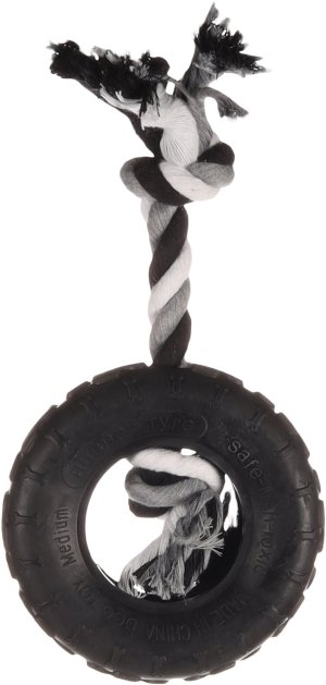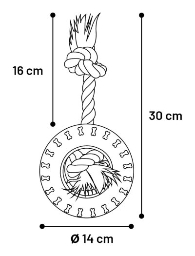 Zábavná hračka z přírodního kaučuku doplněná o bavlněné lano pro extra zábavu.
