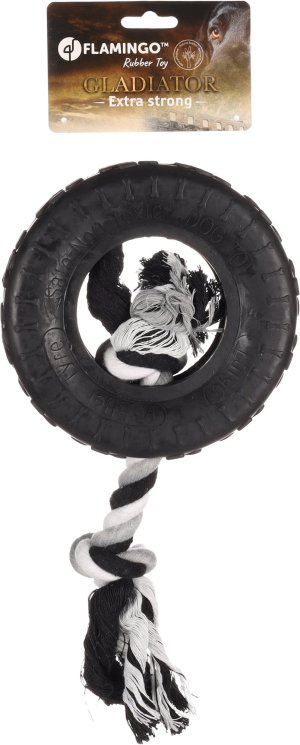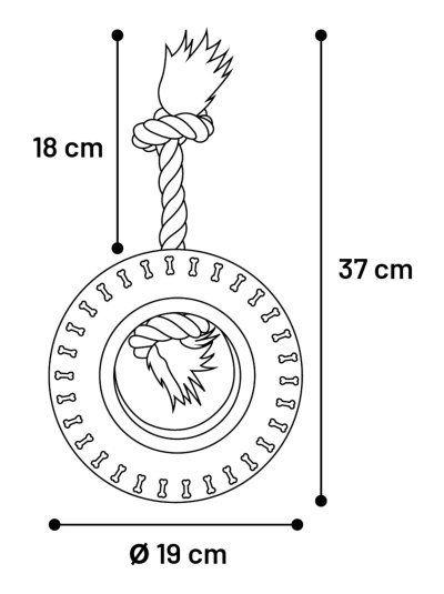 Zábavná hračka z přírodního kaučuku doplněná o bavlněné lano pro extra zábavu.