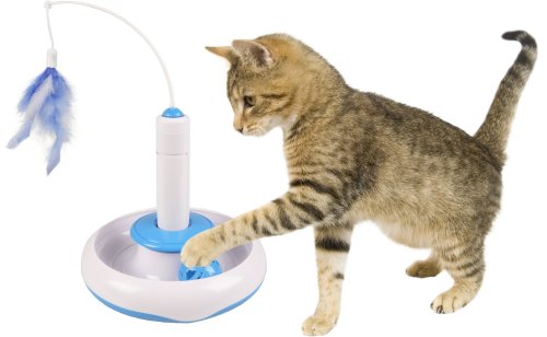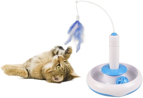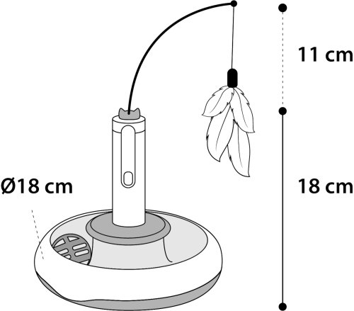 Interaktivní hračka pro kočky s peřím na lanku a míčkem nabízí Vaší kočce zábavou výzvu. Hračka má protiskluzové gumové nožičky.