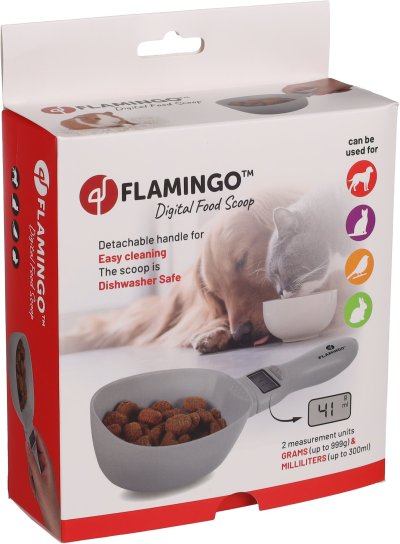 S digitální odměrkou Skalo budete přesně vědět, kolik krmiva Váš mazlíček dostává. Digitální displej pro snadný odečet. Jednoduše lze nastavit g/ml. A co je nejlepší? Odnímatelná naběračka je vhodná do myčky pro snadnou údržbu. Ideální záležitost na dávkování krmiva pro psy, kočky, ptáky a hlodavce!