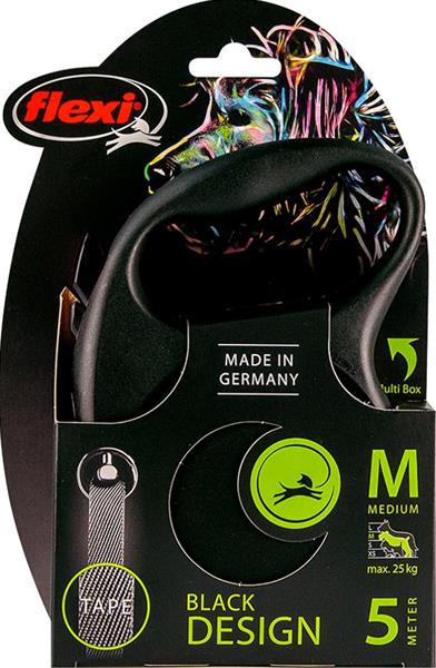 "Black is back"! Moderní ergonomický design, komfortní brzdový systém a zdokonalené vedení pásku. To vše ve 4 barevných variantách. Lze přidat Multi Box pro ukládání pamlsků či sáčků (od velikosti S). Rodinná firma flexi vyrábí výhradně na území Německa. V závodě v Bargteheide u Hamburgu vzniká vše, počínaje návrhem až po výrobu vysoce kvalitních vodítek – Made in Germany. Firma flexi je vynálezcem samonavíjecího vodítka a jedničkou na světovém trhu, exportuje do více než 90 zemí světa. Originální samonavíjecí vodítka flexi se vyznačují patentovaným, po technické stránce nejmodernějším pružinovým systémem a komfortním ovládáním. Jsou vyráběna z vysoce kvalitních materiálů, exkluzivně manuálně zpracovaná a sestavená. Vodítka prochází před expedicí mnoha kontrolami kvality. Velikost: M – vhodné pro psy o hmotnosti do 25 kg. Typ vodítka: Navíjecí – pásek. Délka pásku/lanka: 5 m Barva: černá