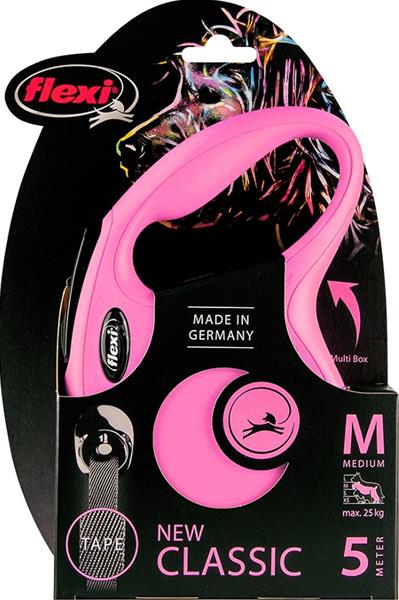 Vodítko základní řady New Classic se vyznačuje jednoduchými tvary a maximální funkčností za přijatelnou cenu. Vylepšený brzdový systém s krátkým zdvihem umožňuje více kontroly. Lze přidat i Multi Box (od velikosti S) pro ukládání pamlsků či sáčků. Rodinná firma flexi vyrábí výhradně na území Německa. V závodě v Bargteheide u Hamburgu vzniká vše, počínaje návrhem až po výrobu vysoce kvalitních vodítek – Made in Germany. Firma flexi je vynálezcem samonavíjecího vodítka a jedničkou na světovém trhu, exportuje do více než 90 zemí světa. Originální samonavíjecí vodítka flexi se vyznačují patentovaným, po technické stránce nejmodernějším pružinovým systémem a komfortním ovládáním. Jsou vyráběna z vysoce kvalitních materiálů, exkluzivně manuálně zpracovaná a sestavená. Vodítka prochází před expedicí mnoha kontrolami kvality. Velikost: M – vhodné pro psy o hmotnosti do 25 kg. Typ vodítka: Navíjecí – pásek. Délka pásku/lanka: 5 m Barva: růžová Na začátku roku 2021 dochází ke změně designu vodítek flexi Classic.