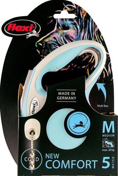 Dokonale navržené dvoubarevné vodítko Vás upoutá na první pohled. New Comfort nabízí všechny funkce, které potřebujete a proto si ho brzy zamilujete! Vylepšený brzdový systém s krátkým zdvihem umožňuje více kontroly, ergonomické držadlo je nastavitelné dle velikosti ruky (od velikosti M). Lze přidat i Multi Box pro ukládání pamlsků či sáčků (od velikosti S). Rodinná firma flexi vyrábí výhradně na území Německa. V závodě v Bargteheide u Hamburgu vzniká vše, počínaje návrhem až po výrobu vysoce kvalitních vodítek – Made in Germany. Firma flexi je vynálezcem samonavíjecího vodítka a jedničkou na světovém trhu, exportuje do více než 90 zemí světa. Originální samonavíjecí vodítka flexi se vyznačují patentovaným, po technické stránce nejmodernějším pružinovým systémem a komfortním ovládáním. Jsou vyráběna z vysoce kvalitních materiálů, exkluzivně manuálně zpracovaná a sestavená. Vodítka prochází před expedicí mnoha kontrolami kvality. Velikost: M – vhodné pro psy o hmotnosti do 20 kg. Typ vodítka: Navíjecí – lanko. Délka pásku/lanka: 5 m Barva: světle modrá