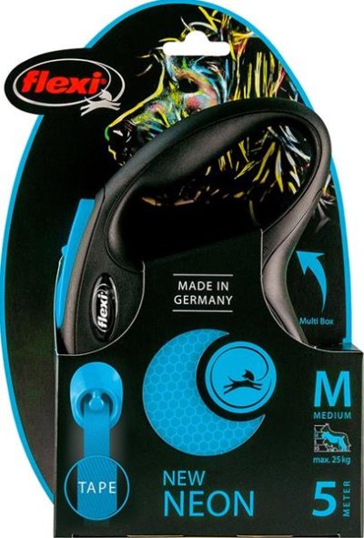 New Neon je vynikající vodítko, které díky reflexním nálepkám a neonově zbarveným prvkům vyniká za všech povětrnostních podmínek. Reflexní nálepky odráží světlomety ve vzdálenosti více než 150 m. Díky neonově zbarveným prvkům jste lépe viděni, jste ve větším bezpečí! Vy a Váš pes patříte k sobě jako jeden tým! Lidé Vás uvidí již z dálky. Vylepšený brzdový systém s krátkým zdvihem umožňuje více kontroly. Lze přidat (od velikosti S) i Multi Box pro ukládání pamlsků či sáčků. Rodinná firma flexi vyrábí výhradně na území Německa. V závodě v Bargteheide u Hamburgu vzniká vše, počínaje návrhem až po výrobu vysoce kvalitních vodítek – Made in Germany. Firma flexi je vynálezcem samonavíjecího vodítka a jedničkou na světovém trhu, exportuje do více než 90 zemí světa. Originální samonavíjecí vodítka flexi se vyznačují patentovaným, po technické stránce nejmodernějším pružinovým systémem a komfortním ovládáním. Jsou vyráběna z vysoce kvalitních materiálů, exkluzivně manuálně zpracovaná a sestavená. Vodítka prochází před expedicí mnoha kontrolami kvality. Velikost: M – vhodné pro psy o hmotnosti do 25 kg. Typ vodítka: Navíjecí – pásek. Délka pásku/lanka: 5 m Barva: modrá