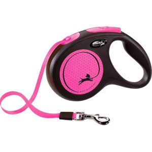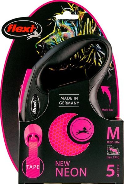 New Neon je vynikající vodítko, které díky reflexním nálepkám a neonově zbarveným prvkům vyniká za všech povětrnostních podmínek. Reflexní nálepky odráží světlomety ve vzdálenosti více než 150 m. Díky neonově zbarveným prvkům jste lépe viděni, jste ve větším bezpečí! Vy a Váš pes patříte k sobě jako jeden tým! Lidé Vás uvidí již z dálky. Vylepšený brzdový systém s krátkým zdvihem umožňuje více kontroly. Lze přidat (od velikosti S) i Multi Box pro ukládání pamlsků či sáčků. Rodinná firma flexi vyrábí výhradně na území Německa. V závodě v Bargteheide u Hamburgu vzniká vše, počínaje návrhem až po výrobu vysoce kvalitních vodítek – Made in Germany. Firma flexi je vynálezcem samonavíjecího vodítka a jedničkou na světovém trhu, exportuje do více než 90 zemí světa. Originální samonavíjecí vodítka flexi se vyznačují patentovaným, po technické stránce nejmodernějším pružinovým systémem a komfortním ovládáním. Jsou vyráběna z vysoce kvalitních materiálů, exkluzivně manuálně zpracovaná a sestavená. Vodítka prochází před expedicí mnoha kontrolami kvality. Velikost: M – vhodné pro psy o hmotnosti do 25 kg. Typ vodítka: Navíjecí – pásek. Délka pásku/lanka: 5 m Barva: růžová