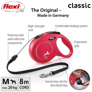 Vodítka flexi® classic nabízí pohodlný úchop, odolný navíjecí systém i kvalitní, bezpečný a intuitivní brzdný systém, který ve zlomku vteřiny zastaví pohyb psa. Pro snadné upevnění vodítka k obojku nebo postroji je vodítko opatřeno chromovanou karabinou. Moderní design lze zároveň kombinovat s praktickými doplňky flexi® Multi Box a flexi® LED osvětlením (kromě velikosti XS).