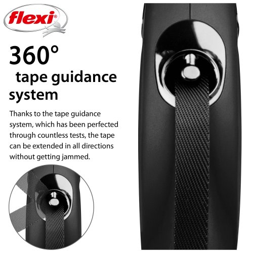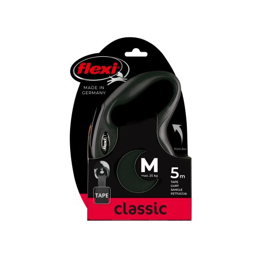 Vodítka flexi® Classic nabízí pohodlný úchop, odolný navíjecí systém i kvalitní, bezpečný a intuitivní brzdový systém, který ve zlomku vteřiny zastaví pohyb psa. Pro snadné upevnění vodítka k obojku nebo postroji je vodítko opatřeno chromovanou karabinou. Samozřejmostí je zdokonalený výstup pásku, který zajišťuje manipulaci v libovolném směru bez zasekávání - potvrzeno nesčetnými testy.