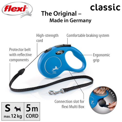 Vodítka flexi® Classic nabízí pohodlný úchop, odolný navíjecí systém i kvalitní, bezpečný a intuitivní brzdový systém, který ve zlomku vteřiny zastaví pohyb psa. Pro snadné upevnění vodítka k obojku nebo postroji je vodítko opatřeno chromovanou karabinou.