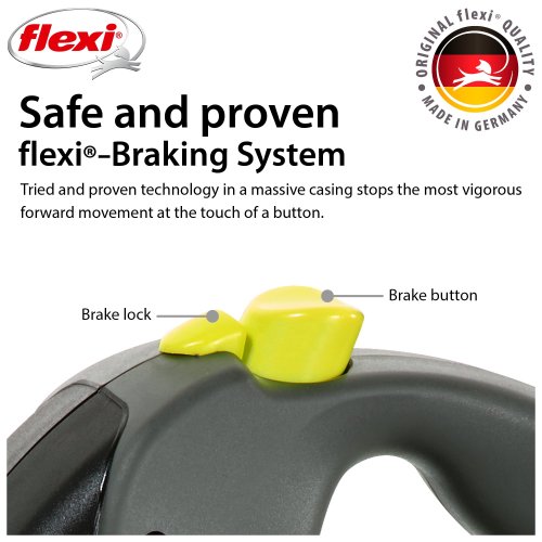 Samonavíjecí vodítko flexi® se nikdy neprověsí. To Vám umožňuje kdykoli zastavit psa stisknutím tlačítka brzdy, bezpečně ho ovládat a přiblížit ho k sobě.
