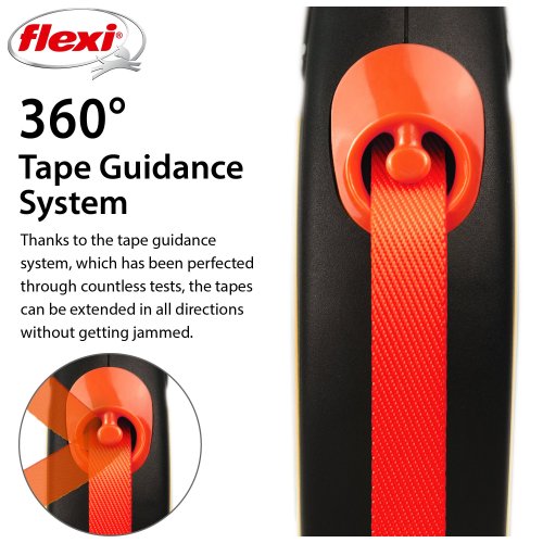 Flexi® Neon zároveň nabízí i nesčetnými testy zdokonalený výstup a vedení pásku všemi směry bez zasekávání. S délkou 5 m poskytuje Vašemu parťákovi potřebnou volnost pohybu.