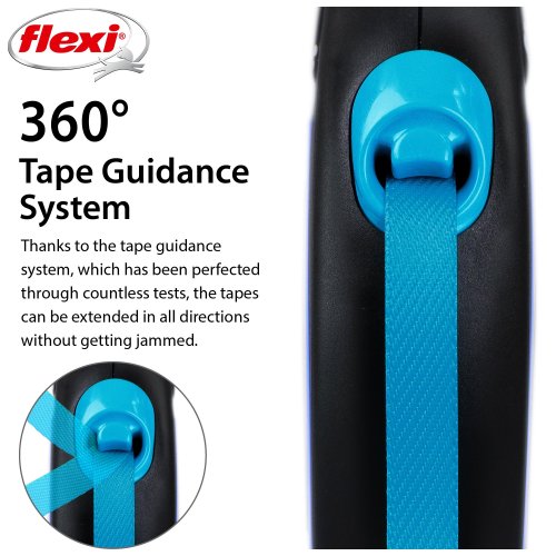 Flexi® Neon zároveň nabízí i nesčetnými testy zdokonalený výstup a vedení pásku všemi směry bez zasekávání. S délkou 5 m poskytuje Vašemu parťákovi potřebnou volnost pohybu.