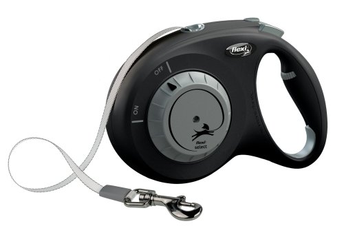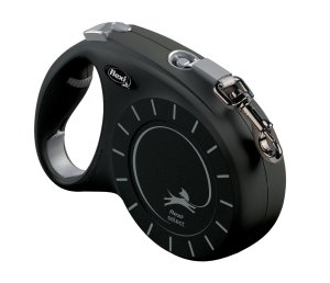 První samonavíjecí vodítko flexi®, u kterého lze maximální délku volně nastavit mezi 0 a 7 metry, díky čemuž je flexi® Select ideální pro procházky ve městě i v lese.