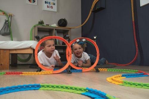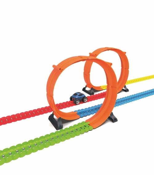 Superloopingová sada pro svět závodní dráhy Smoby FleXtreme, ve kterém si děti mohou stavět nejbláznivější dráhy pomocí flexibilních kolejnic s pořádným stoupáním, klesáním a divokými zatáčkami. Sada obsahuje 2 multifunkční superloops smyčky s upevňovacím příslušenstvím. S touto sadou lze ideálně doplnit stávající závodní dráhu FleXtreme. Superloops můžete sestavit a využít různými způsoby - jako dvojitou super smyčku, jako dvě po sobě následující jednoduché smyčky nebo jako jednoduchou smyčku kdekoliv na dráze. Lze sestavit a zapojit vodorovně i svisle.