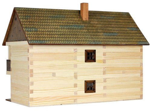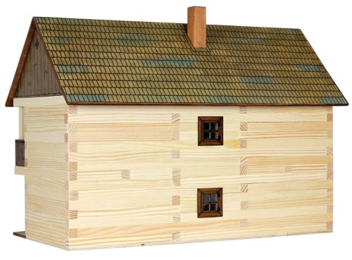 Dřevěná stavebnice Walachia ke slepení - Fojtství. Slepovací stavebnice Walachia jsou dřevěné modely domečků a staveb z Valašského kraje v měřítku 1:32. Základem jsou dřevěné hranolky 9x9 mm a k tomu jsou v sadě vždy všechny papírové doplňky - okna, dveře, střešní části atd. Pro lepení se používá lepidlo Herkules, není však součástí stavebnice. Přiložený je montážní návod a malé kapitoly z historie lidové architektury. Níže je označení obtížnosti číslem 1 - 5, přičemž 1 je nejlehčí. Počet dílů: 298 rozměry: 34x18x23 cm Obtížnost: 4