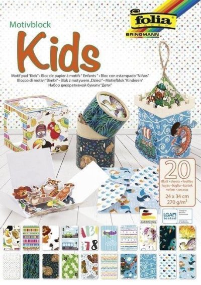 Blok s dětskými motivy obsahuje: 20 listů s motivem z jedné strany, z druhé strany bílé. Rozměr 24x 34 cm, 270 g/m2?